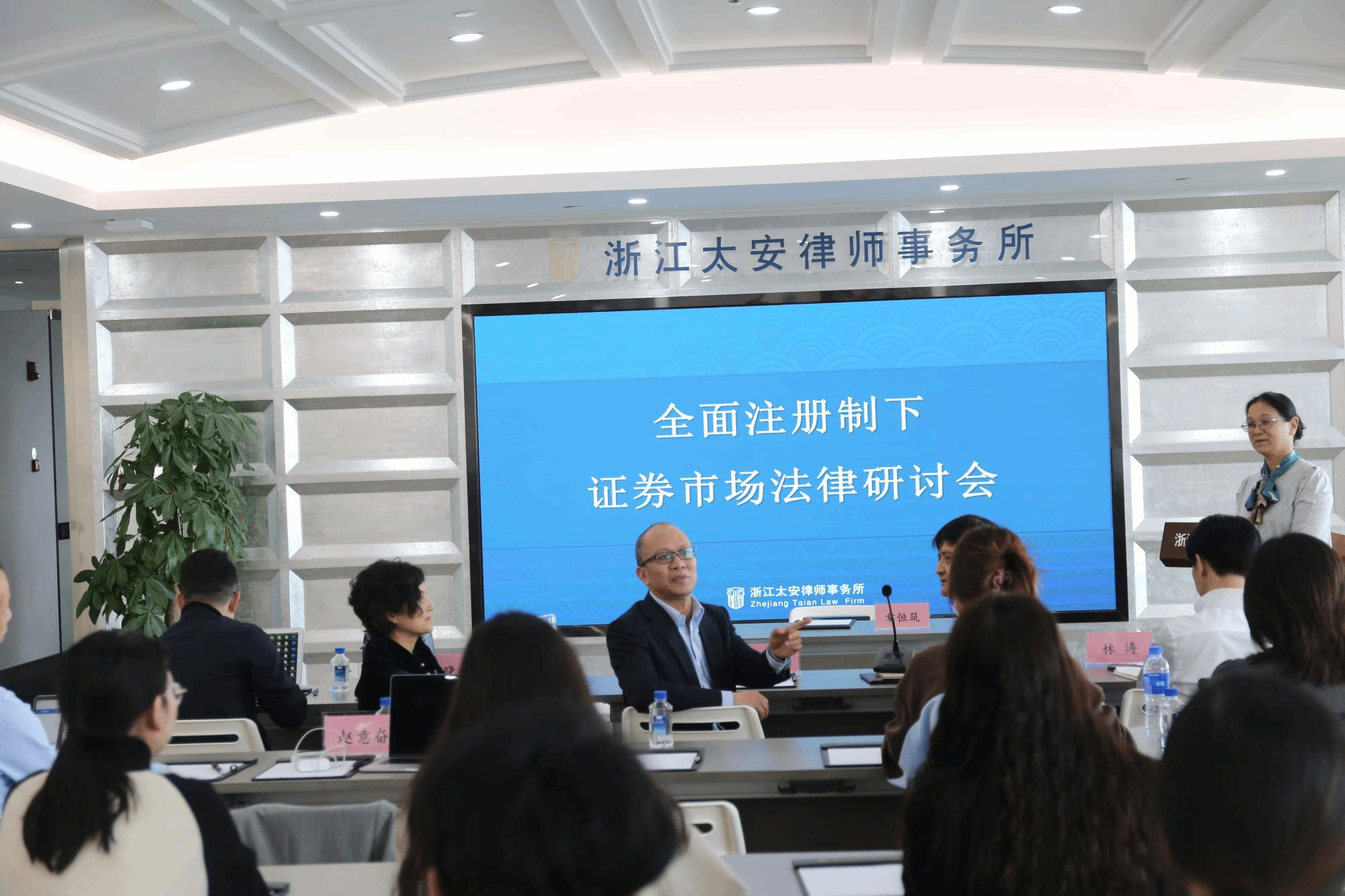 2023年4月22日上午9:00到11:30,宁波大学-浙江太安律师事务所金融法律研究中心在浙江太安律师事务所召开了全面注册制下的证券市场监管制度研讨会。