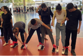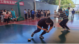 本届教职工运动会设趣味项目、田径项目两大类。其中趣味项目分集体项目和个人项目。集体项目有“抖甩乒乓球”“蛟龙出海”“抢种抢收”,个人项目有“沙包掷准”“投篮”“踢毽子”“跳绳”。田径项目为“8x50”米接力赛。