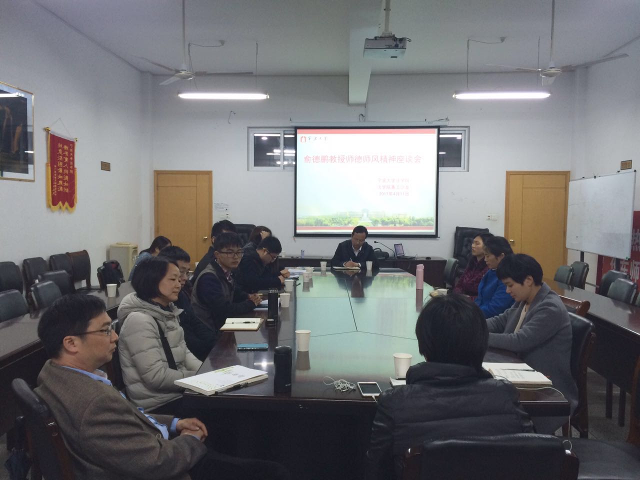 特举办了关于俞德鹏教授师德师风座谈会。座谈会由博彩论坛