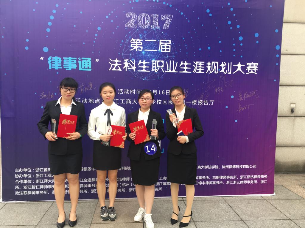 协办的浙江省第二届“律事通”法科生职业生涯规划大赛决赛在浙江工商大学正式举行。经过初赛、复赛筛选,全省本科生组产生10位决赛选手,研究生组产生5位决赛选手。我院3位本科生、1位研究生晋级决赛,晋级选手人数名列全省第一。