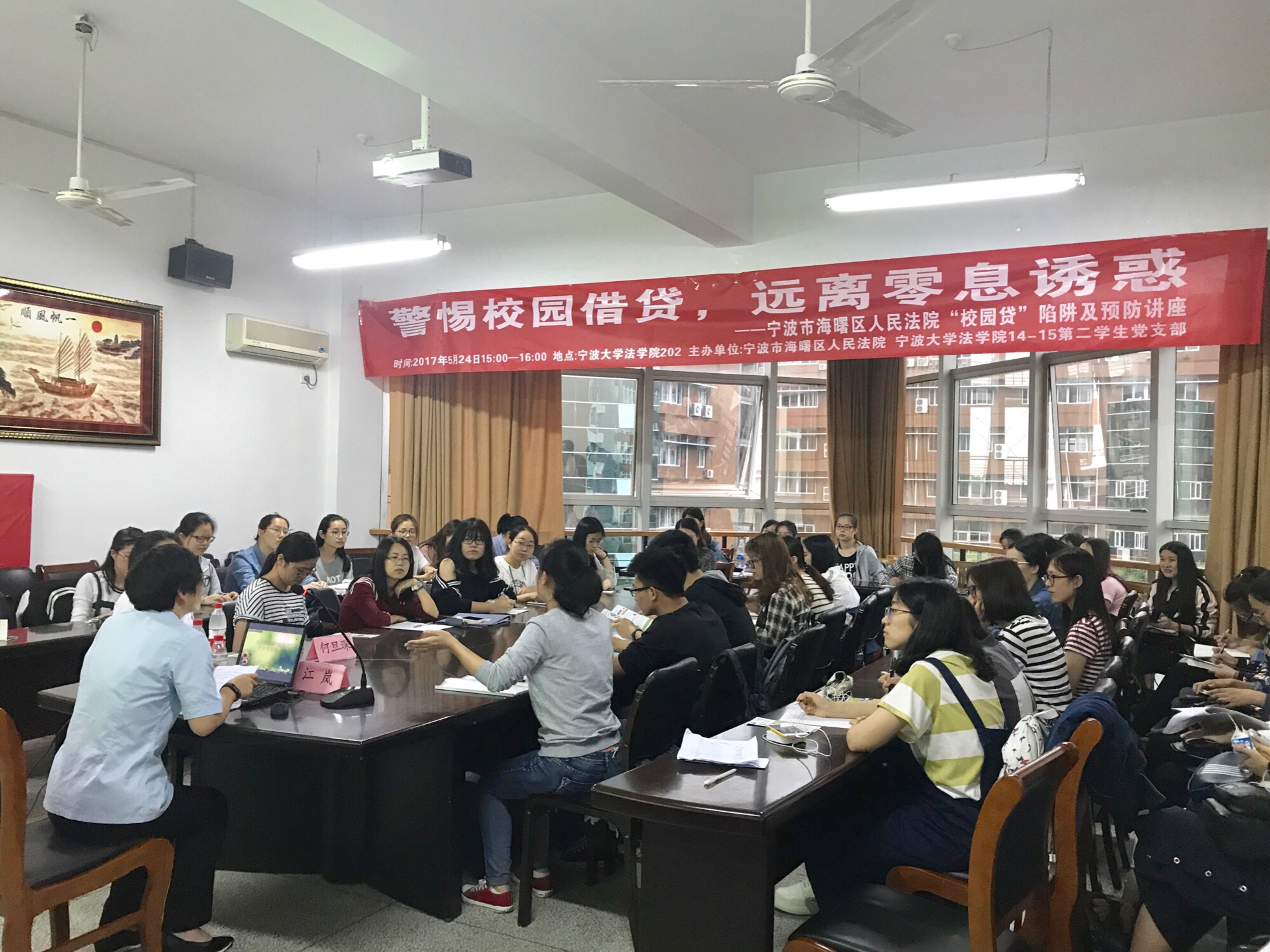 14-15第二学生党支部与宁波市海曙区人民法院主办的“校园贷”陷阱及预防讲座在博彩论坛
