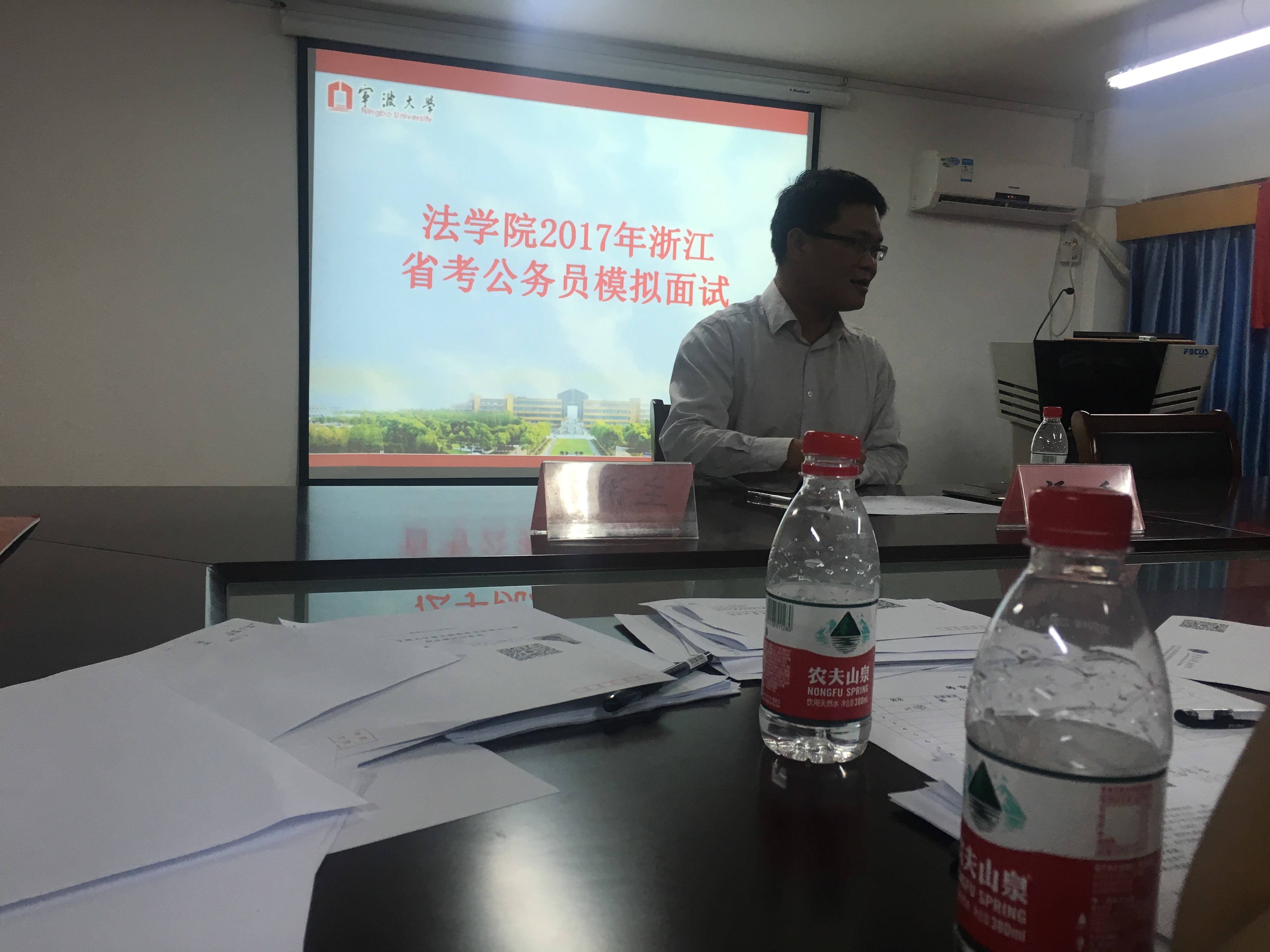 在学院报告厅举行了2017年浙江省省考公务员模拟面试活动。共有十位进入面试环节的同学参加了本次模拟活动。