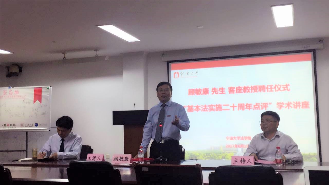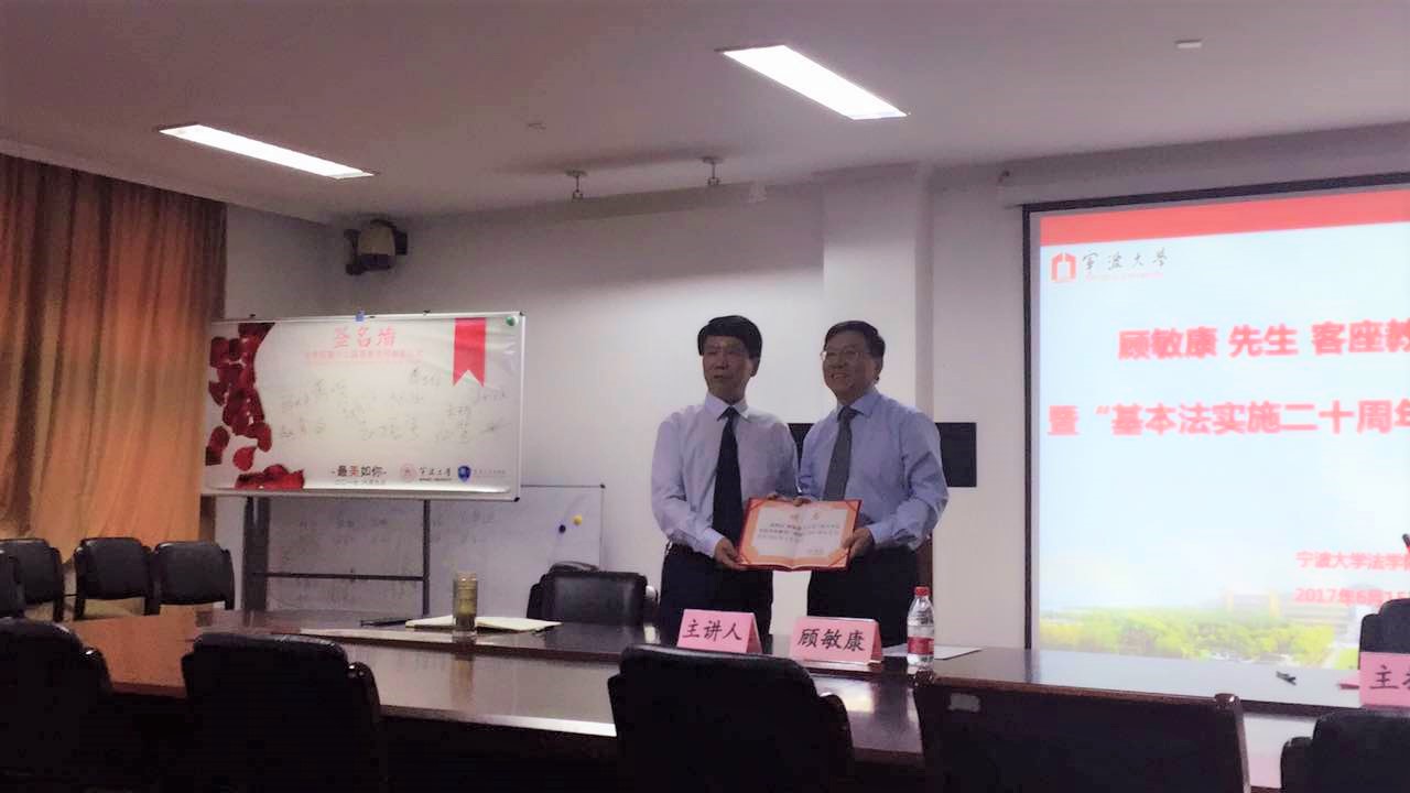 客座教授表示衷心的感谢,并表示将在宁波大学法学学科的建设上贡献自己的力量。随后,顾教授就基本法实施二十周年的相关问题展开了学术讲座。