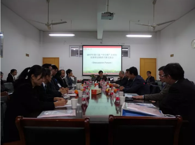 11月18日,第八届“中日韩”大学生法律英语演讲大赛开幕式结束后,“中日韩”三国五校交流会在博彩论坛