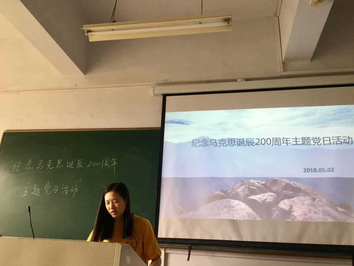 5月2日,积极分子培训班第四小组在2-514开展了马克思诞辰200周年主题党日活动。本次活动分为五个模块,分别是马克思生平介绍、马克思主义介绍、马克思著作介绍、马克思及马克思主义基础知识小问答。通过学习,大家认为,马克思主义是关于全世界无产阶级和全人类彻底解放的学说,同时它也是中国共产党和社会主义事业的指导思想,我们应该在对其进行学习运用的基础上结合自身特色进行继承和发展。通过知识小问答,不仅增加了党日活动的趣味性、参与度,也提高了同学们对关于马克思及马克思主义基础知识的掌握程度。