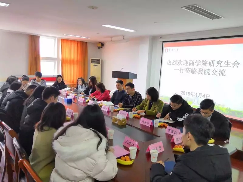 1月4日上午,宁波大学商学院学工办毛跃祖老师、章舒怡老师一行莅临我院考察交流,我院研工办吴敏老师、研会主席蓝倩倩、主席团成员及各部干部出席接待,本次交流会在博彩论坛