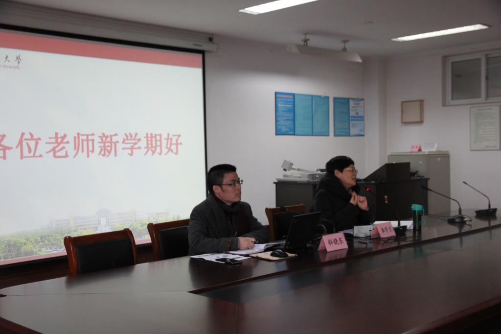 党委书记李学兰传达学校2019年寒假中层领导干部扩大学习会精神,学习《深化人事制度改革推进“双一流”建设》主题工作报告,深入解读学校关于第七轮岗位聘任相关文件。希望全体教职工在岗聘中能“各安其位,各尽其责,各得其所”,为学院、学校的发展出力。