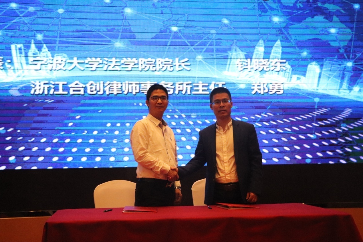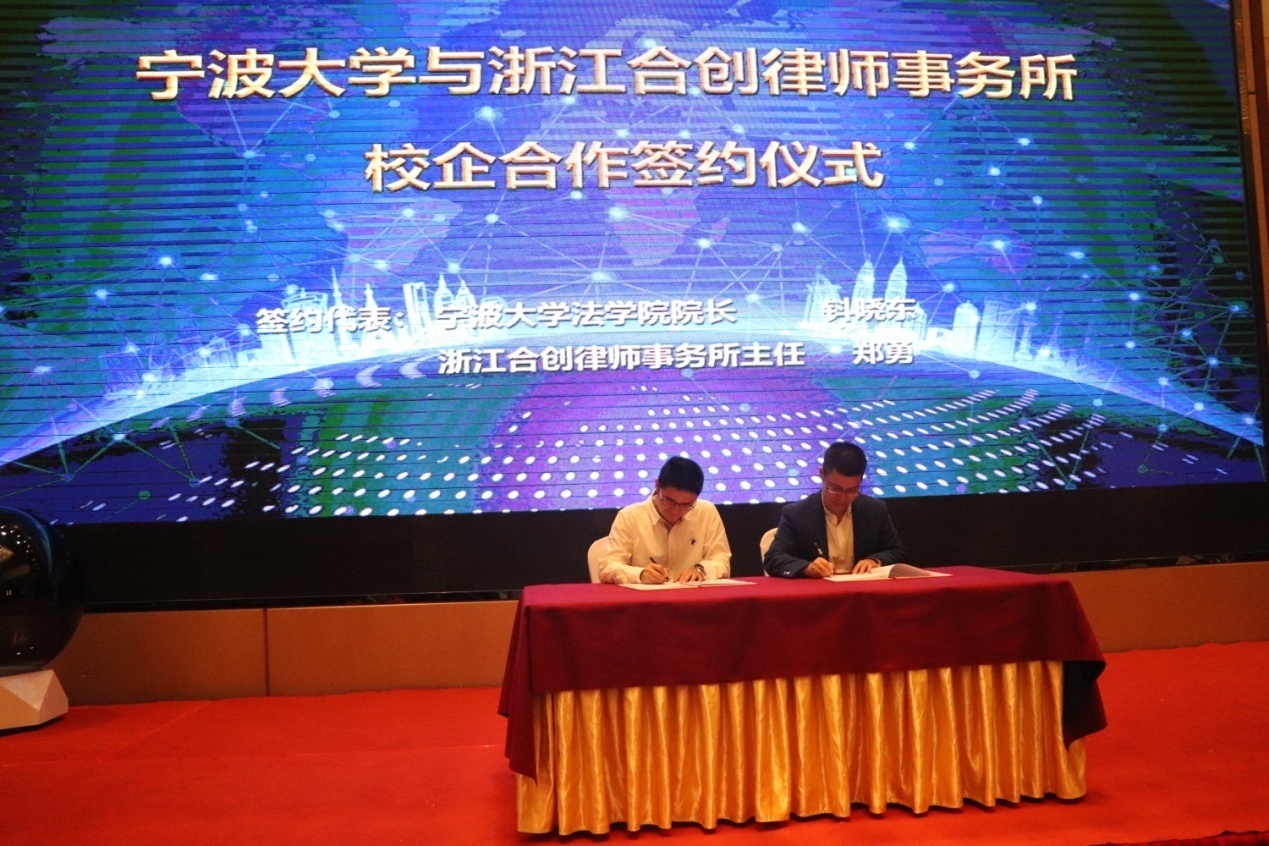 院长鈄晓东与浙江合创律师事务所主任郑勇共同签订了《共建“宁波大学—浙江合创律师事务所法律实务发展合作平台”协议书》,双方将按照“优势互补、互利共赢、协同创新、共同发展”的原则,致力于提升法律人的专业素养,加强法科学生实践能力培养,促进院所理论与实践的深度融合,提升教师和律师的职业发展能力。