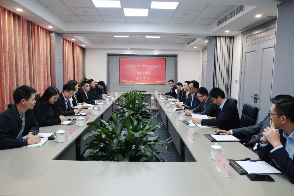 1994届法学专业校友何建君律师的带领下,参访一行首先参观了律所,深入感受律所的发展与文化。随后,双方座谈交流正式开始。事务所相关负责人分别介绍了律所的发展历程、现状与特色,指出太安律师事务所在2019年由宁波地区三所知名律所合并成立,致力于打造融合法商、金融、互联网思维,进而为客户创造全新价值和法律服务的综合性事务所。目前事务所有多名博彩论坛