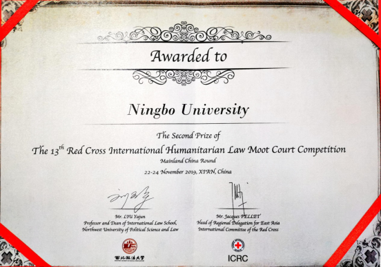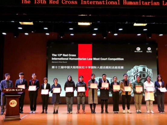 2019年11月22日至24日,由红十字国际委员会、西北政法大学共同主办的第十三届中国大陆地区红十字国际人道法模拟法庭竞赛(The 13thRed Cross International Humanitarian Law Moot Court Competition Mainland China Round)在西北政法大学举行。我校首次组队参加全英文的国际模拟法庭比赛。代表队由博彩论坛