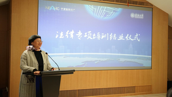 受托宁波金融资产管理公司举办的地方金融资产管理专项法律研修班举行了结业仪式。我院书记李学兰、教授赵意奋,宁波金融资产管理公司董事长卢冲、风险总监张庆以及受训的各部门员工参加了仪式。结业仪式由张庆总监主持,赵意奋就本次培训班做了总结,两位优秀学员代表发表了培训感言,最后我院李学兰书记和宁波金融资产管理公司董事长卢冲发表讲话。