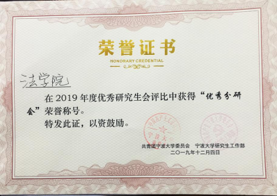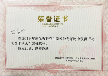 研究生会连续三年蝉联宁波大学优秀研究生会(全校6个)、优秀研究生学术沙龙(全校3个)荣誉称号。