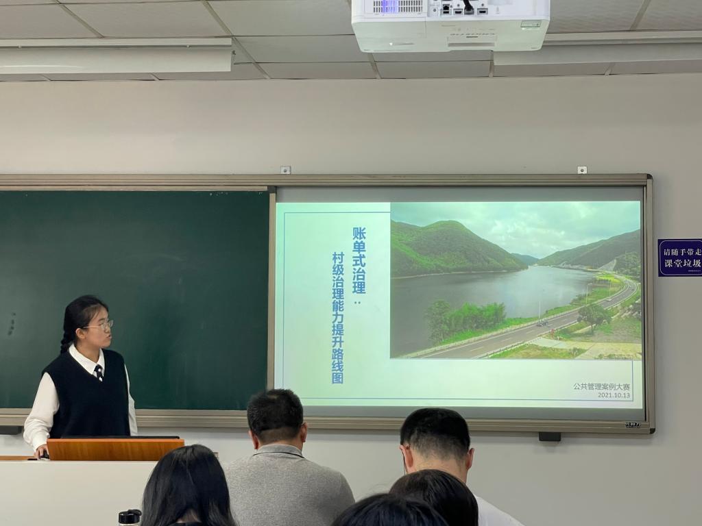 经文本提交初选,共有8组选手晋级现场答辩选拔。根据竞赛规则,围绕结合“数字化改革、人居环境提升、‘双减’政策、共同富裕”等主题,每位选手分别从案例背景、案例正文、原因分析、问题分析以及解决措施等角度利用ppt展示,对自己的案例进行详细的讲解和分析,客观表达对案例的见解并尝试探索提出合理的解决办法。评委老师们结合选手文本和现场陈述,针对性提问并给出案例完善的意见和建议。经过近两个小时的激烈角逐,选拔赛将产生7组优秀项目晋级浙江省第五届大学生公共管理案例大赛的选拔。