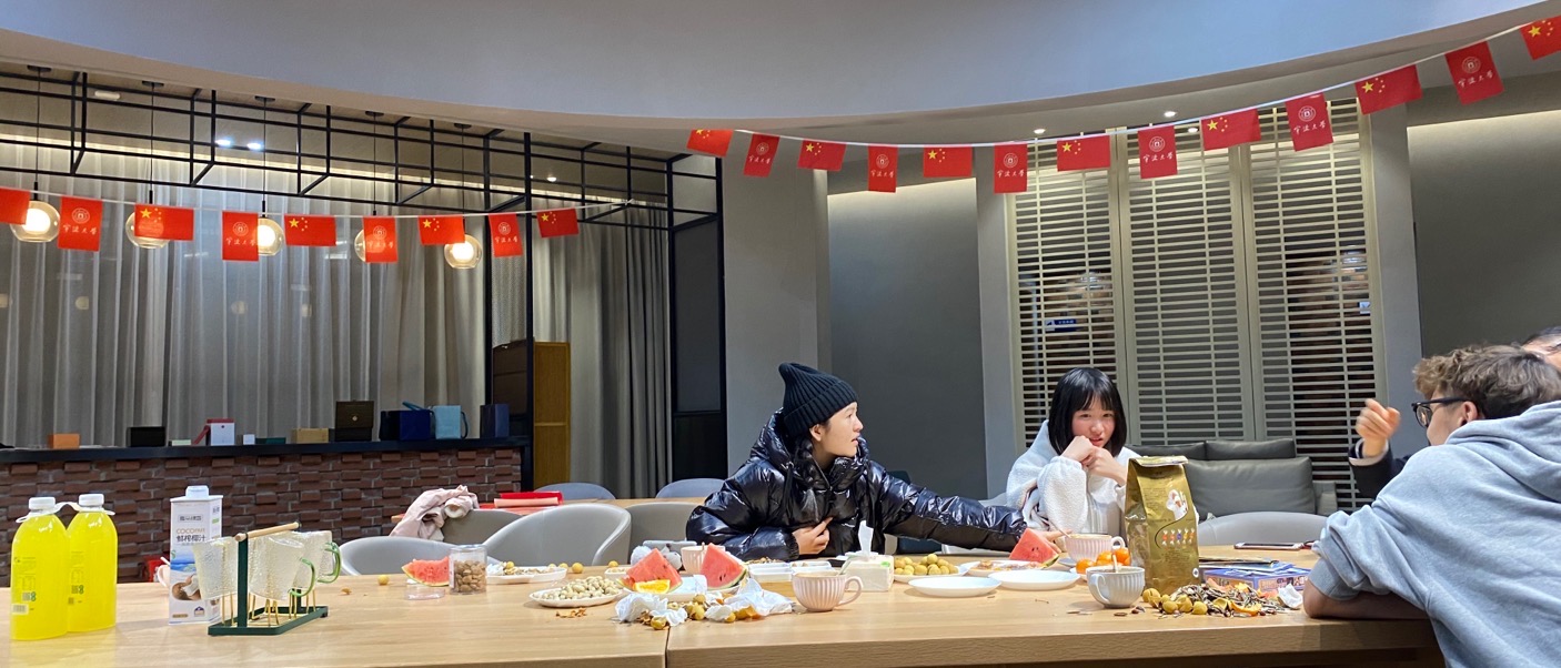 召开2022年春节留校学生座谈慰问会。院党委副书记吴敏老师、学生工作办公室主任邓美玲老师、全体留校学生参加了慰问活动。活动在宁波大学校友之家举行。