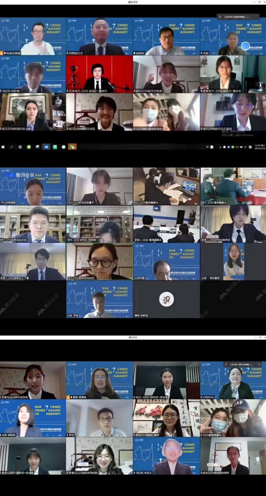 4月16日至17日,2022年国际刑事法院中文模拟法庭比赛(下称“ICC中文赛”)正赛庭辩第一轮和第二轮以线上比赛的形式通过腾讯会议举行。本届大赛共有81支高校代表队参加,参赛队伍数量较再创历史新高!凭借高质量的书状,包括宁波大学代表队在内的51支代表队晋级正赛。在进行三场激烈的正赛庭辩之后,宁大代表队以综合总分第28名的佳绩,与复旦大学、北京师范大学、中国海洋大学、天津大学等高校同获赛事全国三等奖。