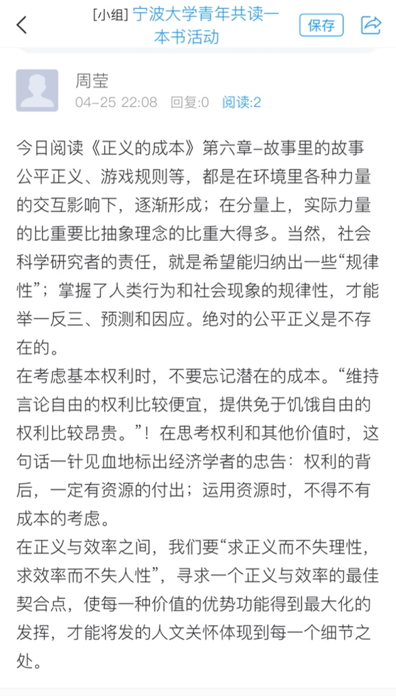团委通过超新星学习通平台上组织开展了真诚读书节系列活动——“共读一本书”每日打卡活动,
