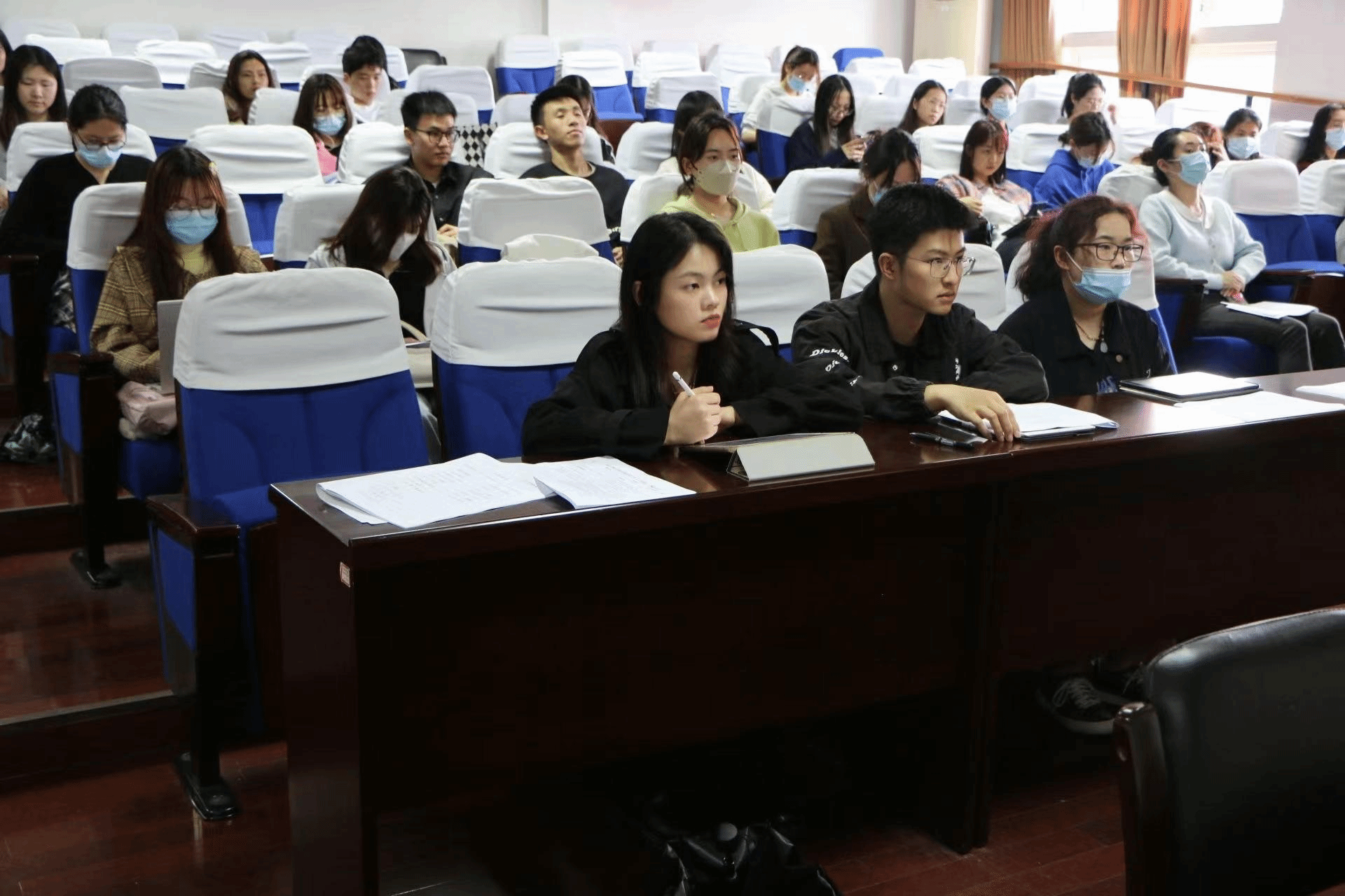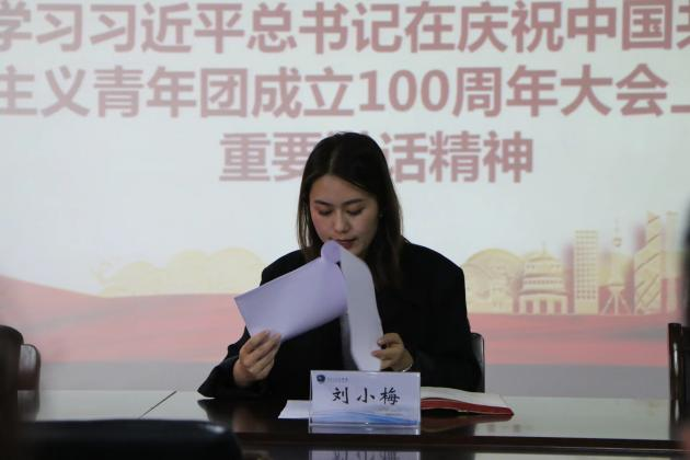 团委书记刘小梅老师带领团委干部和团支部书记40余人线下学习习近平总书记在庆祝中国共青团成立100周年大会上的讲话精神。重点提到习近平总书记在讲话中的“坚持为党育人”“自觉担当尽责”“心系广大青年”“勇于自我革命”,这是习近平总书记对中国共产主义青年团提出的殷殷期望和明确要求,我们应该朝着这个目标继续前进。同时,要求同学们要牢记习近平总书记对共青团员和团干部的殷切期望,要充分发挥青年追求进步的特质,展现吃苦在前、享乐在后的精神风貌,脚踏实地奉献社会、服务大众,做一颗平凡有用、永不生锈的螺丝钉。